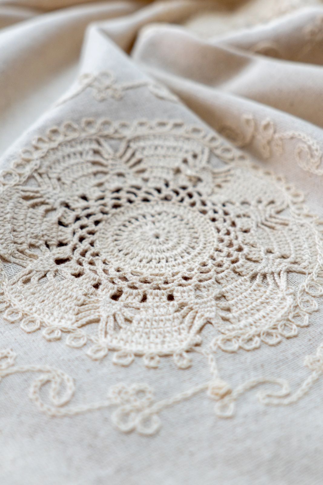 Ortasındaki ve kenarlarındaki danteller tamamen el işçiliğidir.