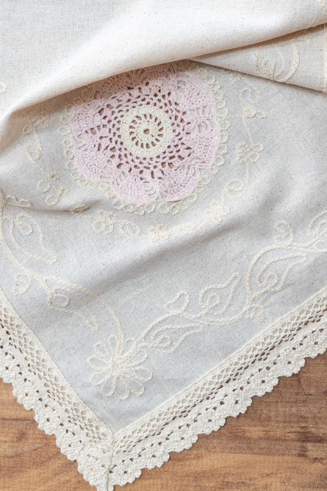 Ortasındaki ve kenarlarındaki danteller tamamen el işçiliğidir.