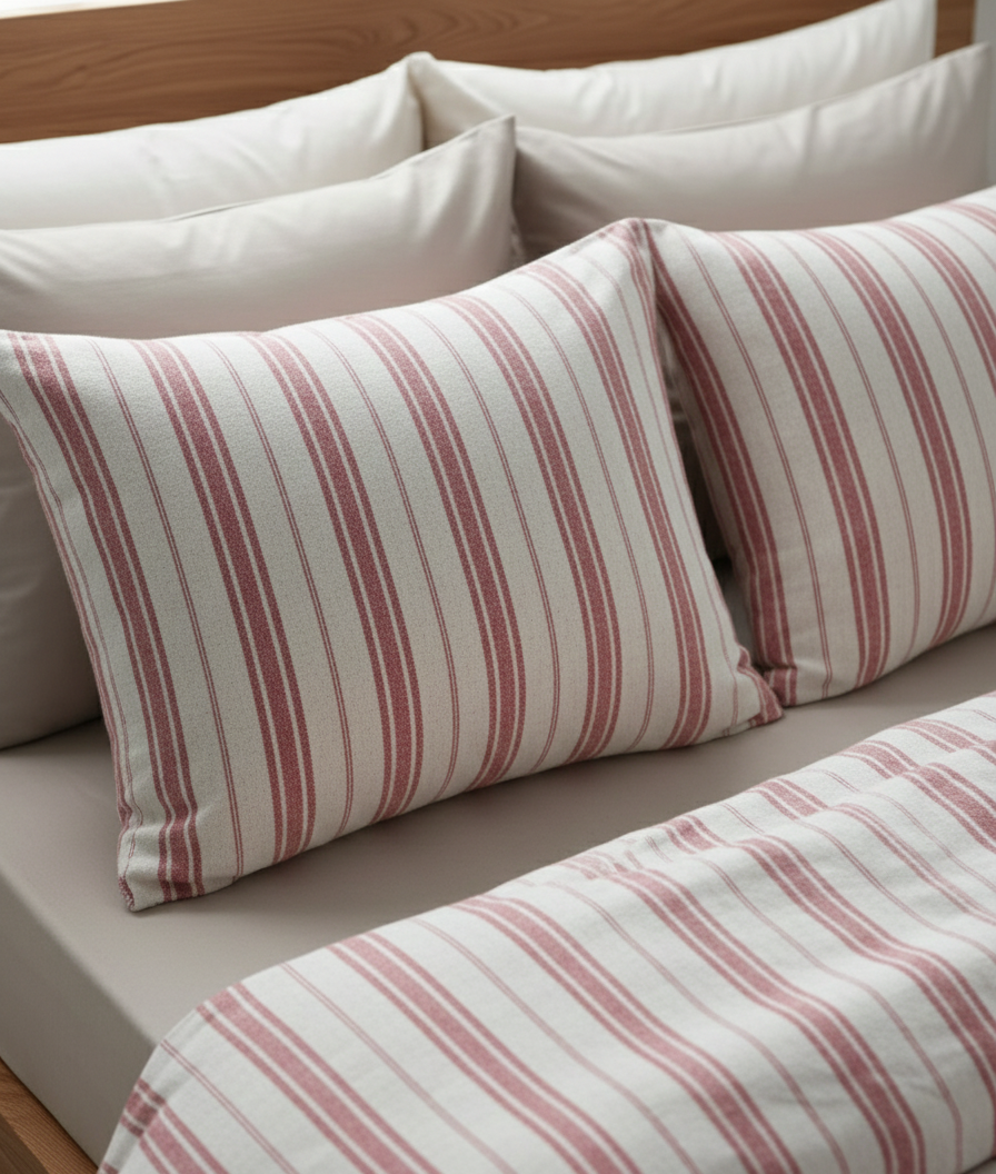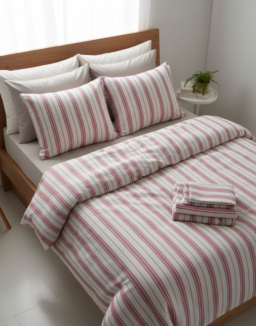 Kırmızı Çizgili Keten Nevresim Takımı Çift Kişilik