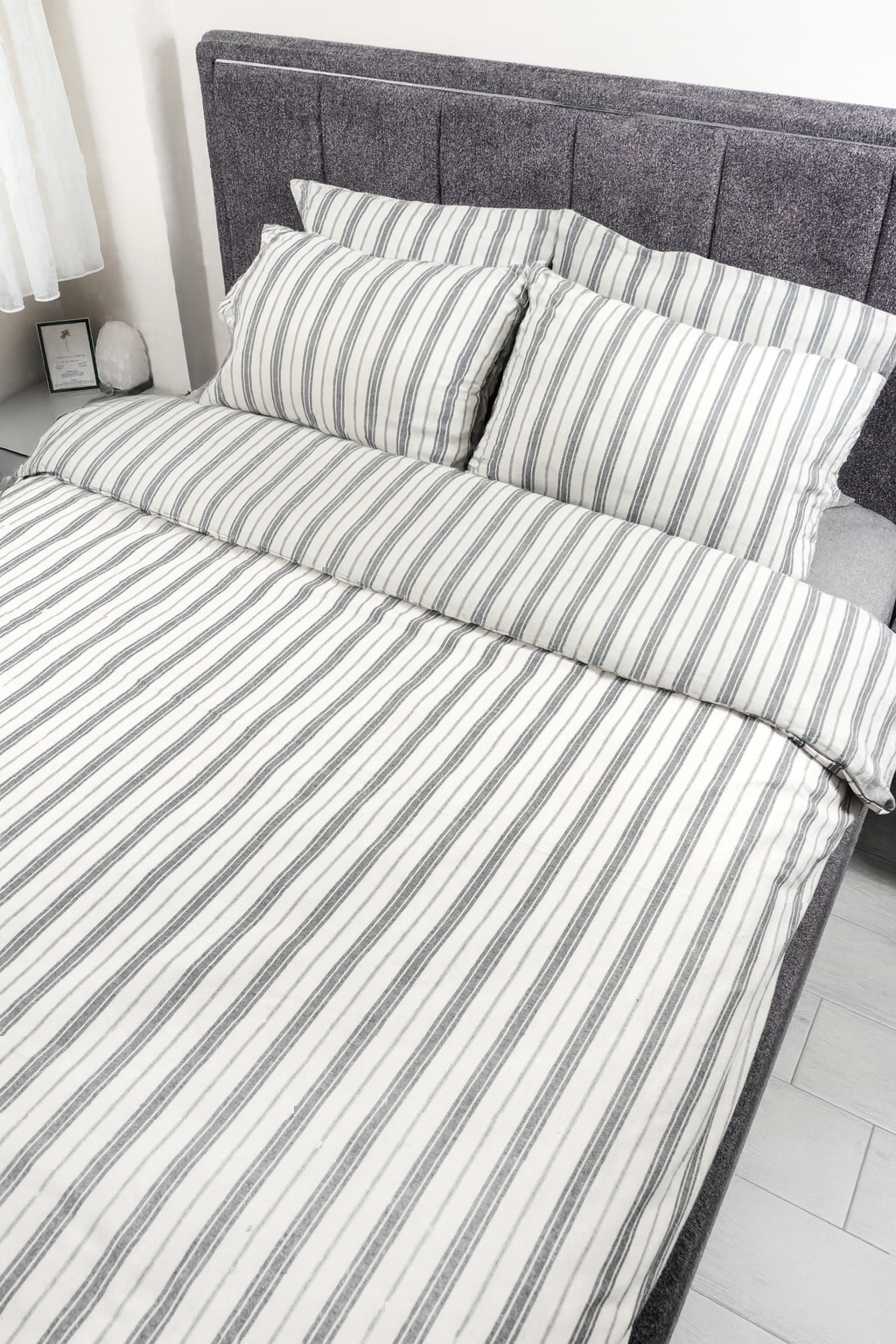 Gri Çizgili Keten Nevresim Takımı Çift Kişilik