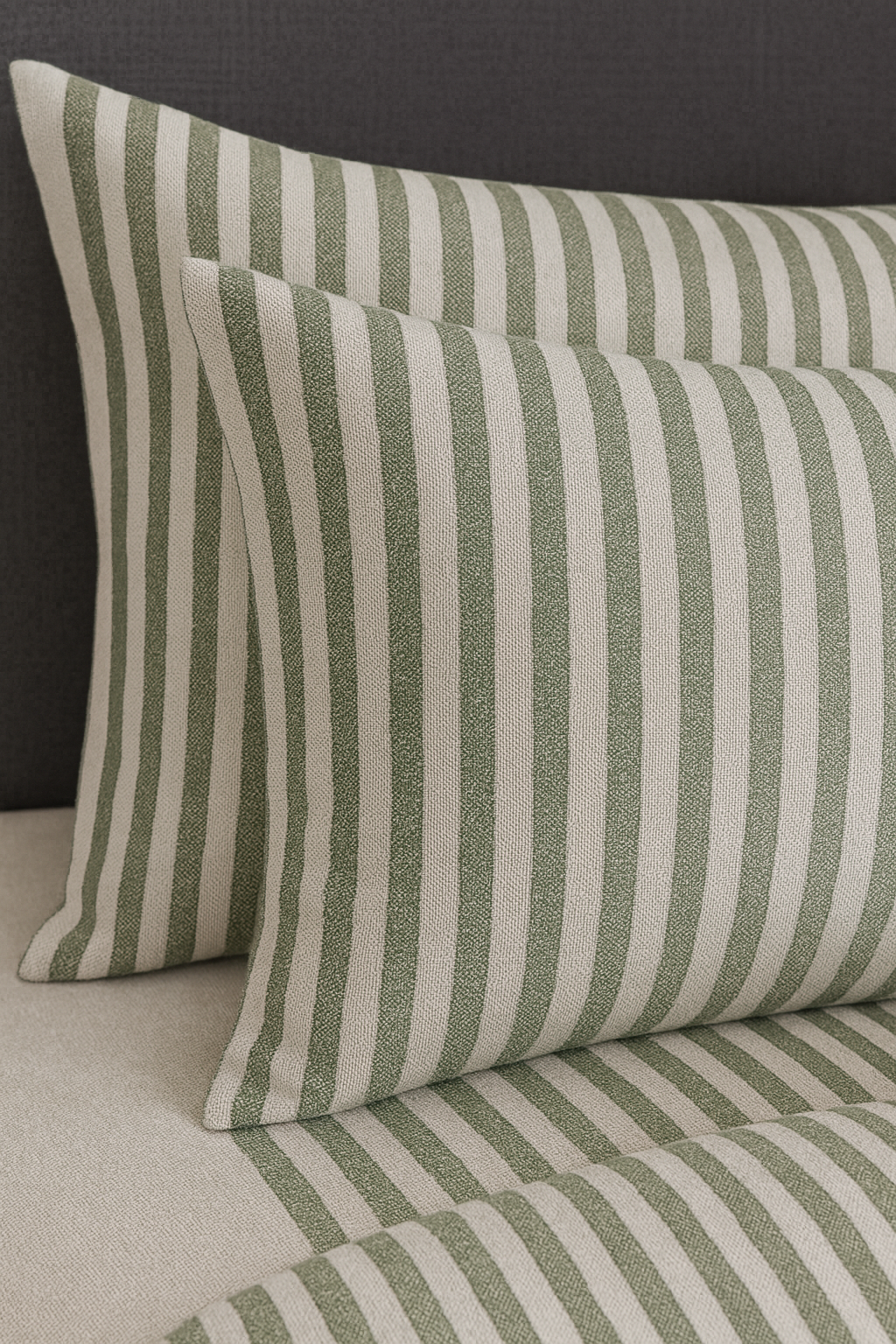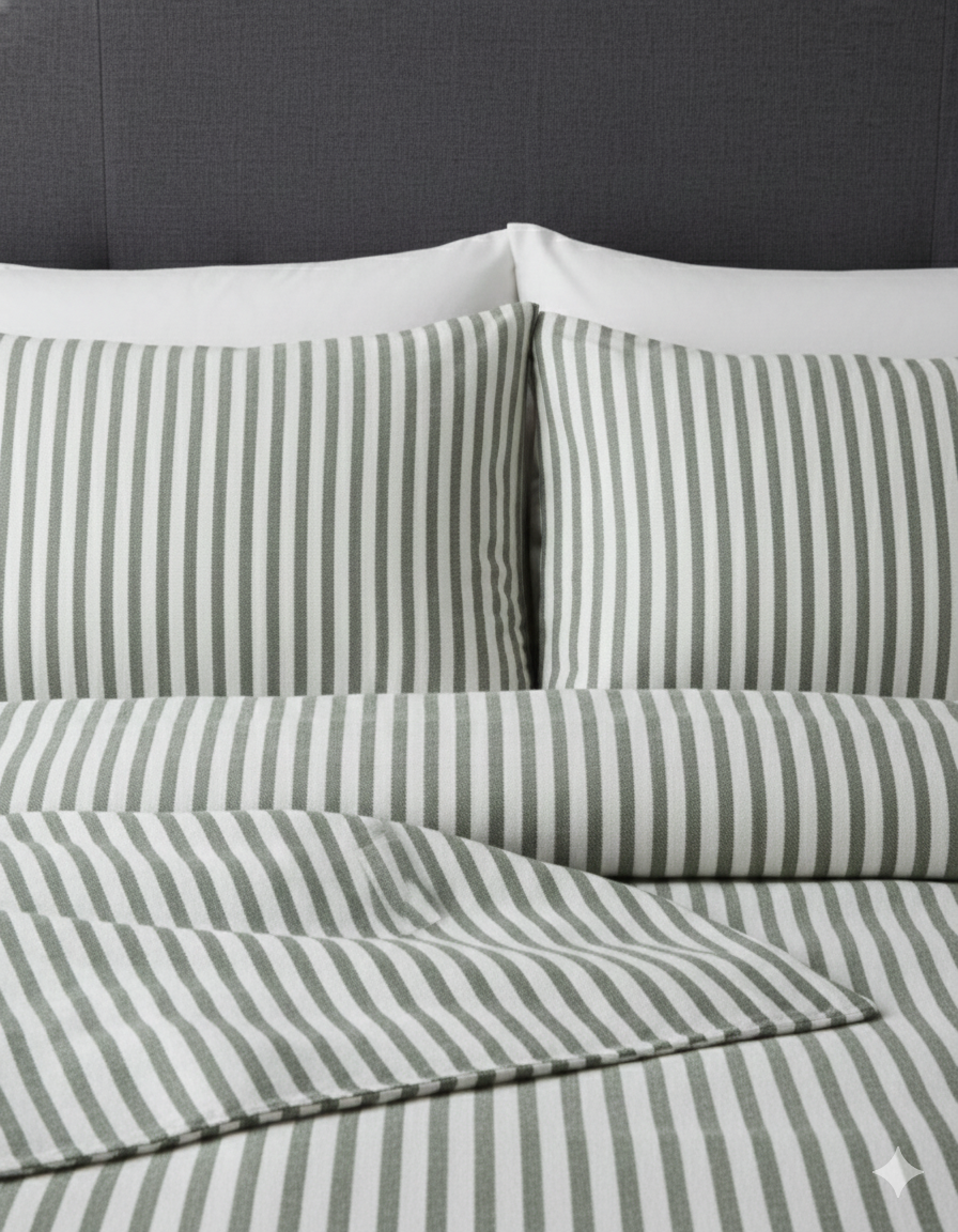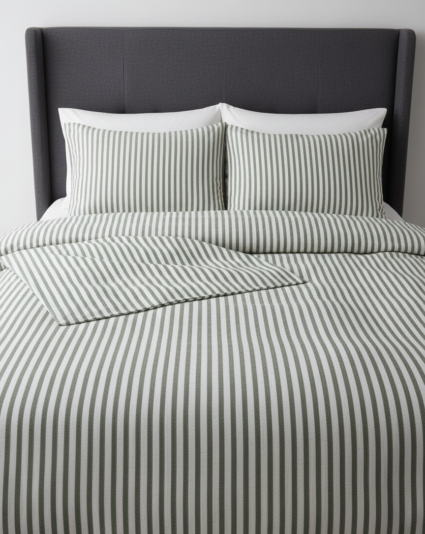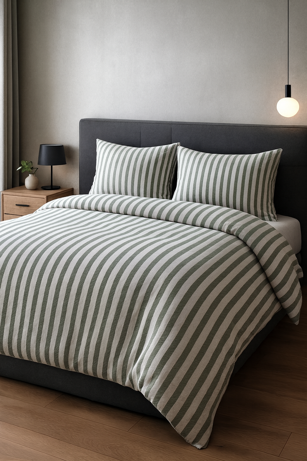 Yeşil Çizgili Keten Nevresim Takımı Çift Kişilik