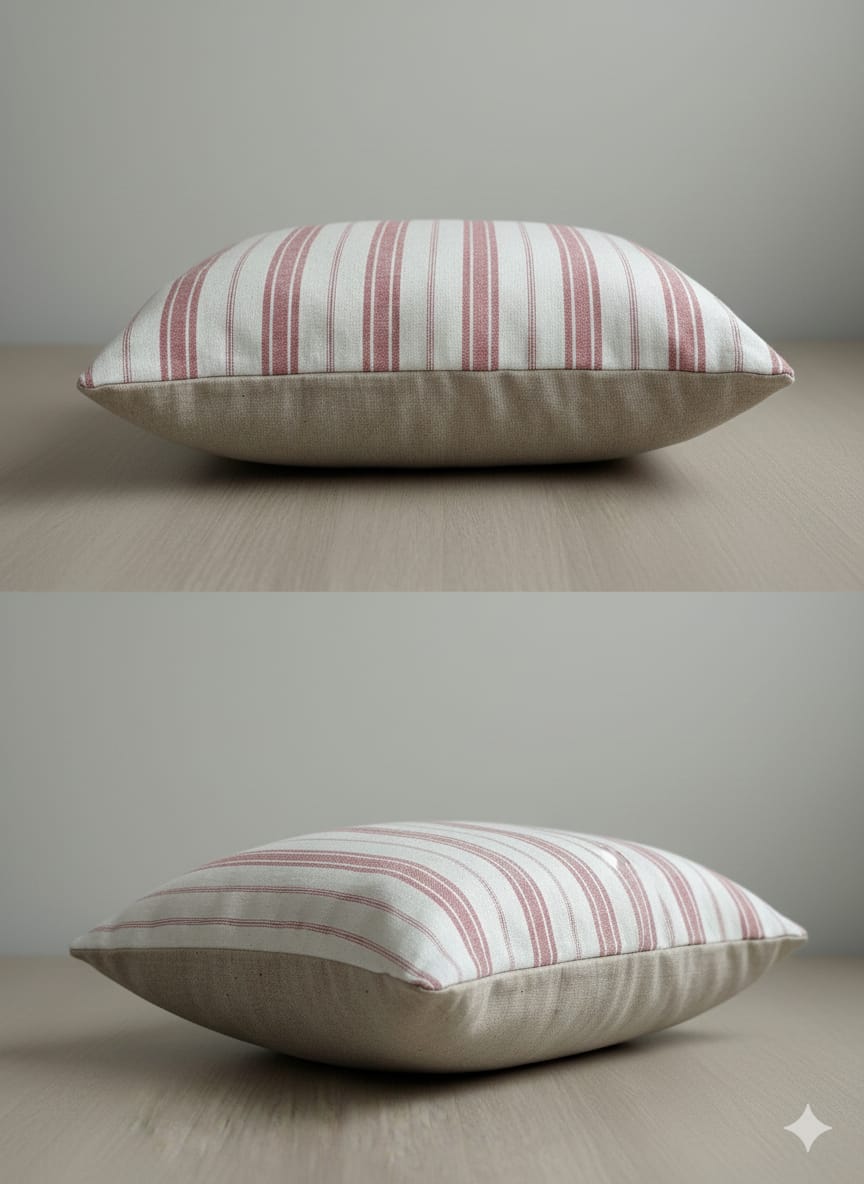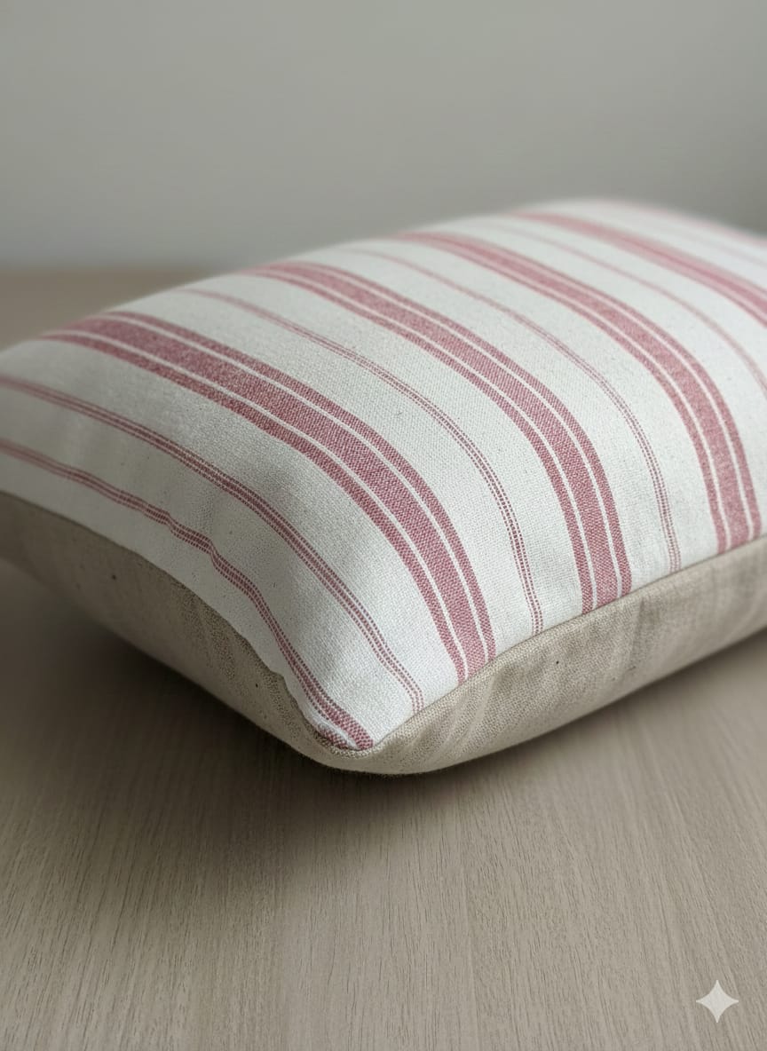 Kırmızı Çizgili Keten Yastık Kılıfı