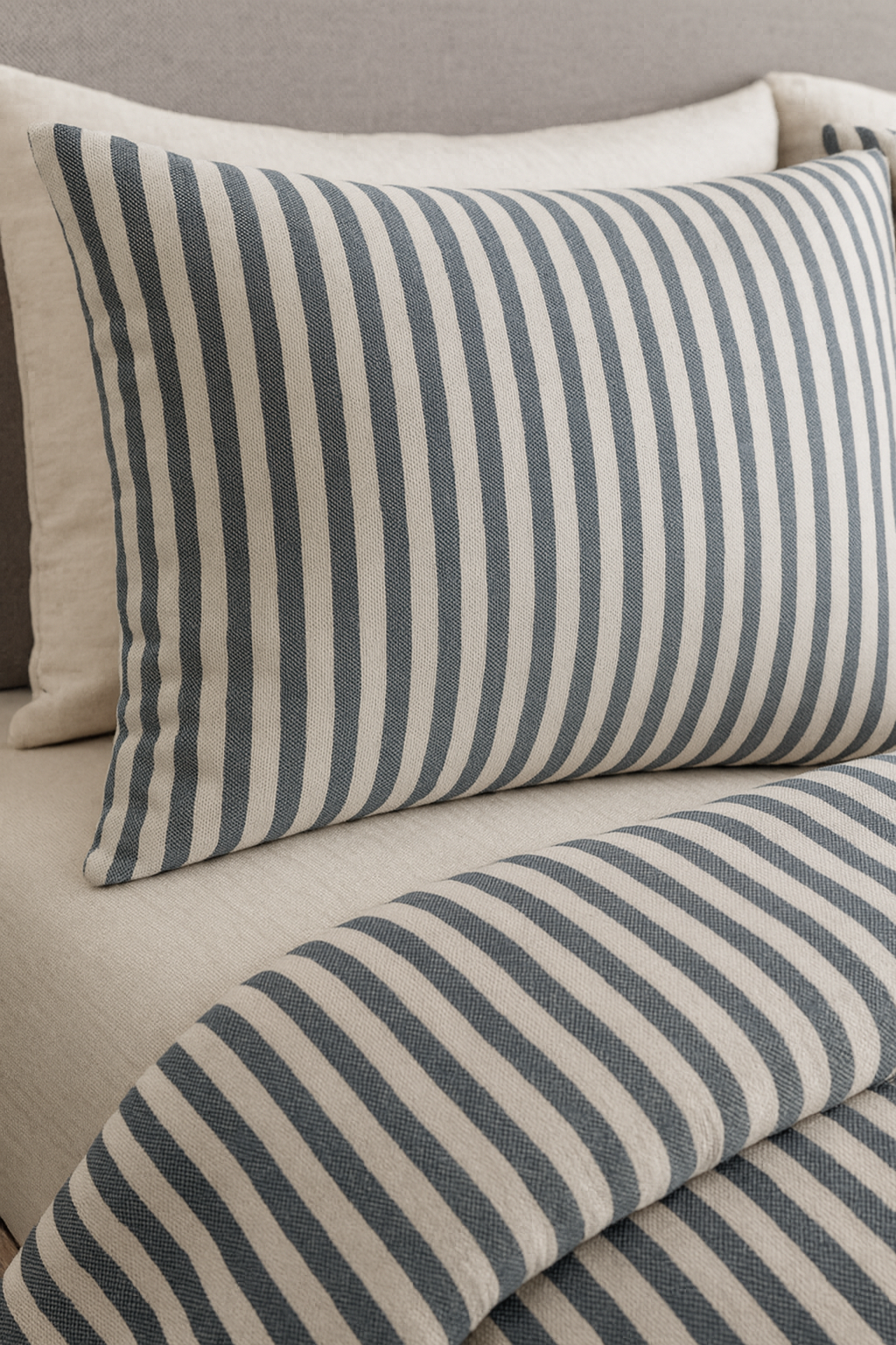 Lacivert Çizgili Keten Yastık Kılıfı
