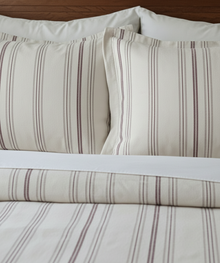 Bordo Çizgili Keten Nevresim Takımı Çift Kişilik