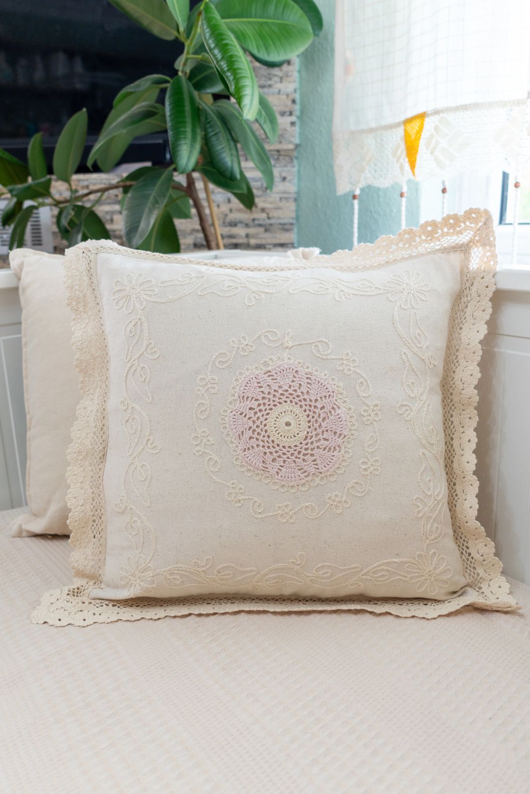 Koton,Dantelli Pembe Detaylı Kırlent Kılıfı