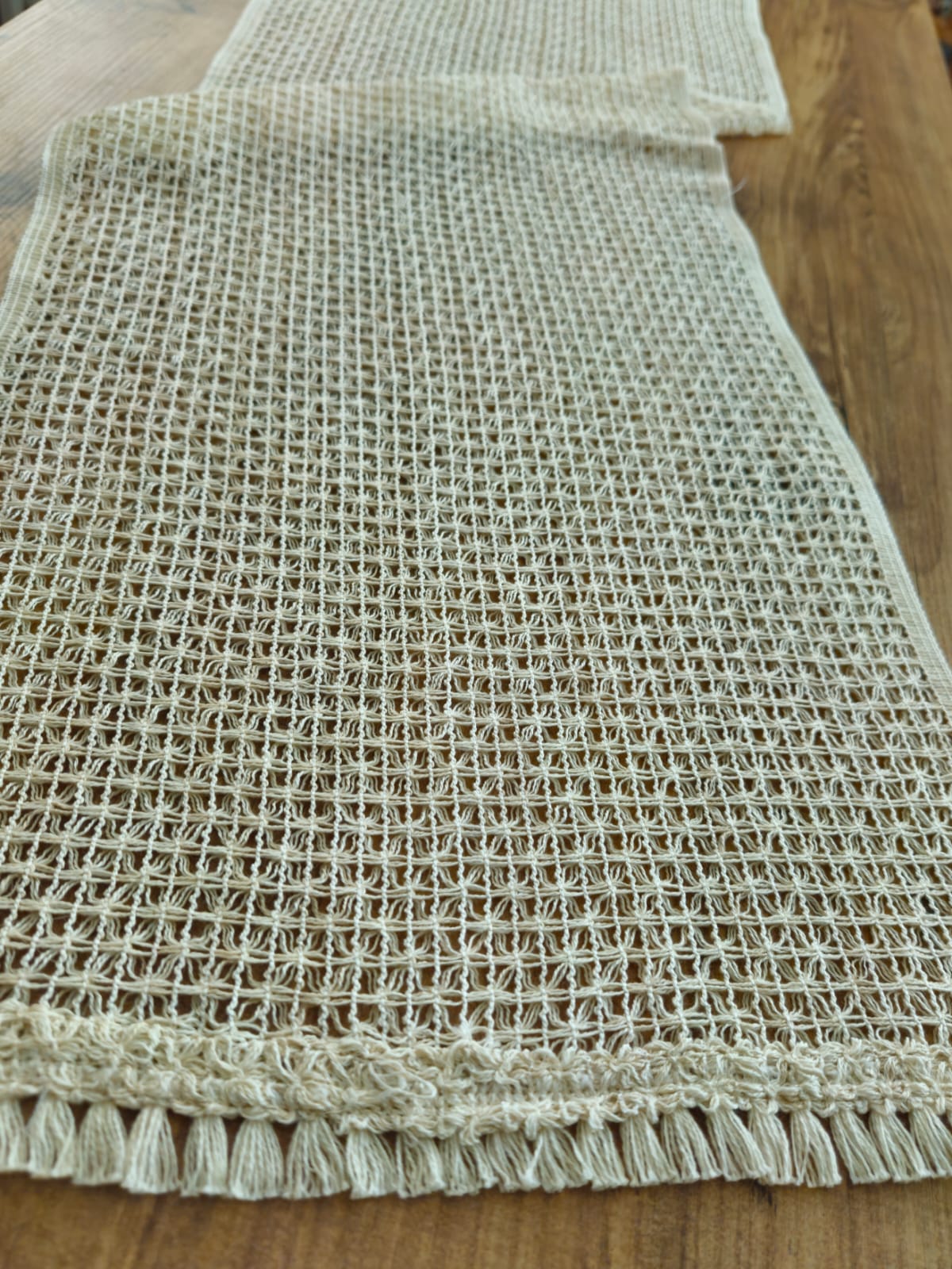 Pamuklu runner, sofralarınıza şıklık ve sadelik katan pratik bir masa aksesuarıdır. %100 pamuktan üretilmesi sayesinde yumuşak...